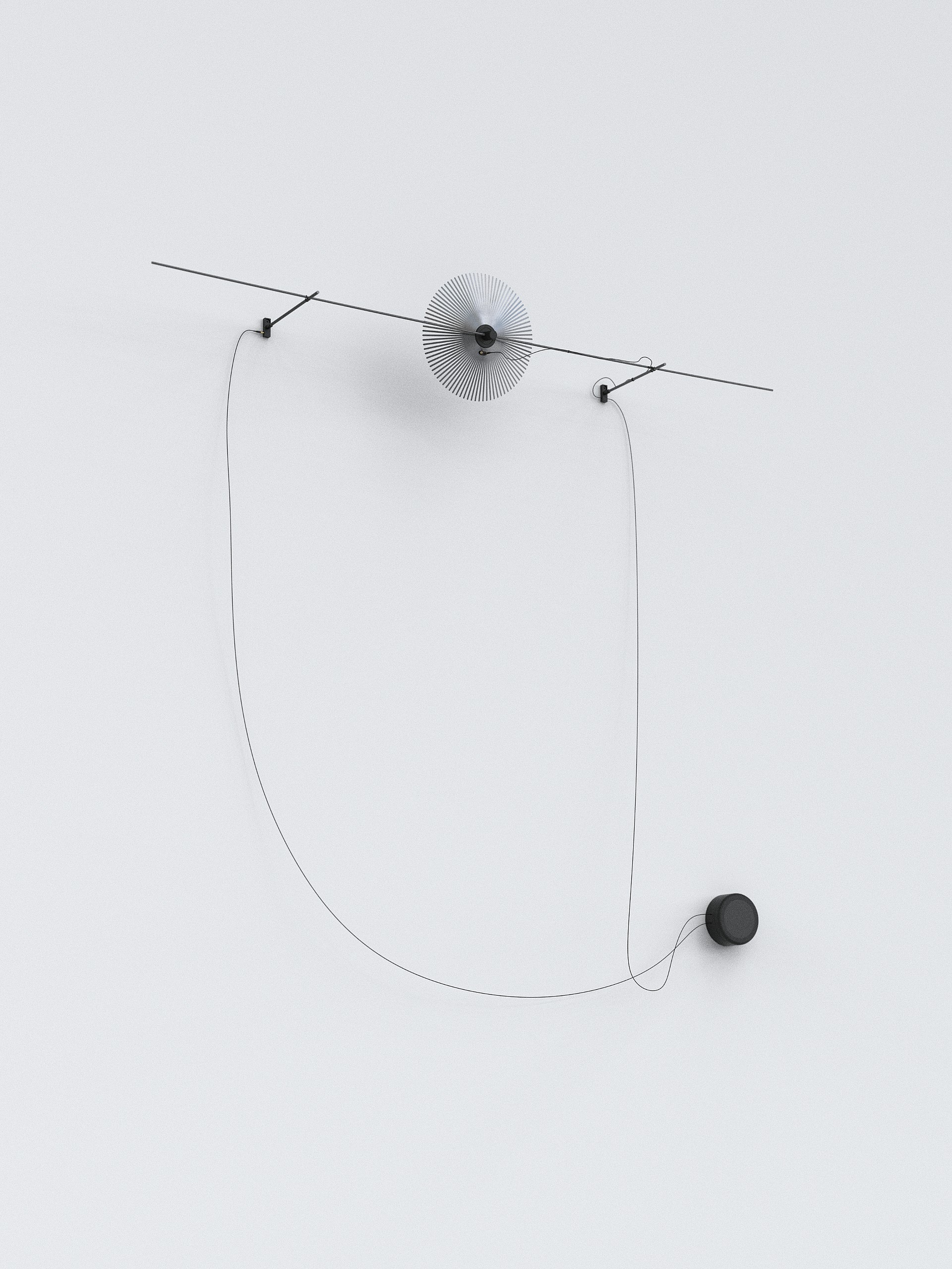 Harper Line  如同一件令人惊叹的墙面雕塑,呈现出对称与平衡的状态。两根从墙面轻盈伸出的细线,构成了作品最核心的视觉张力:一根横杆安静地架设其上,花型灯头如同太阳般在横线上绽放,形成一种近乎不可思议的轻巧与稳定。墙面配有滑动触摸开关,支持无极调光,带来流畅而细腻的使用体验。纤细的电线像有机生长的藤蔓,与冷静的金属线条形成对比,使整件作品更具艺术性。